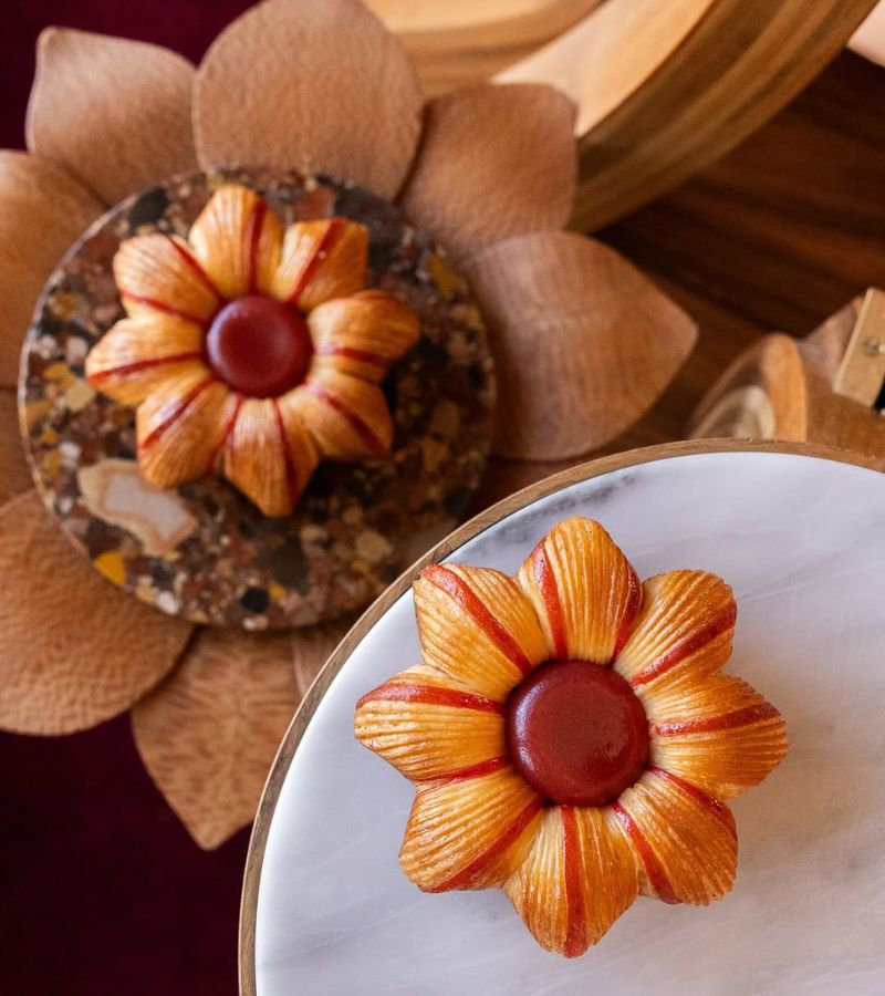 • Cacao Flower Pudding – A floral-shaped dessert born from his collaboration with chef Arnaud Donckele.