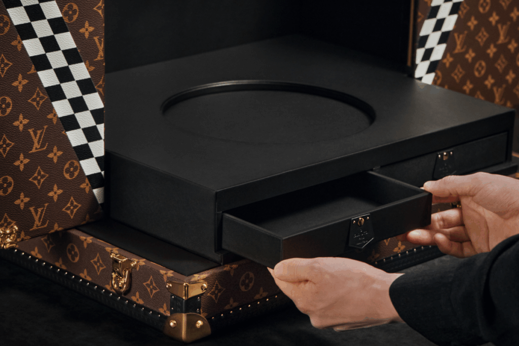 Louis Vuitton adapts each trunk to the host country or circuit vibe, ensuring each edition feels unique but unmistakably part of a series. / Photo via Louis Vuitton