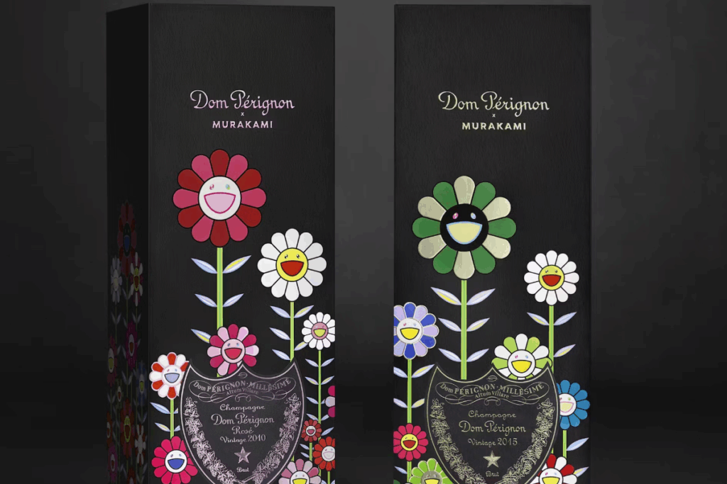 Murakami’s work is deeply rooted in the concept of kawaii—the culture of cuteness—and the Superflat movement, which blurs the lines between high art and pop culture. His collaboration with Dom Pérignon is a celebration of this philosophy, where playful motifs meet the sophistication of vintage champagne.