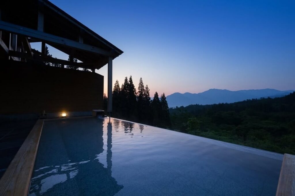 In Niigata’s snow country, Satoyama Jujo reinterprets Japanese luxury through cultural preservation and ecological restraint. Centered on a restored 150-year-old kominka farmhouse, the hotel blends traditional carpentry with modern design pieces by figures such as Isamu Noguchi. Its philosophy, known as “social design,” connects guests to local artisans, agriculture, and seasonal rhythms. The cuisine focuses on Koshihikari rice and mountain vegetables harvested locally, while the onsen overlooks Mount Makihata. Satoyama Jujo positions hospitality as a tool for regional revitalization and cultural continuity.