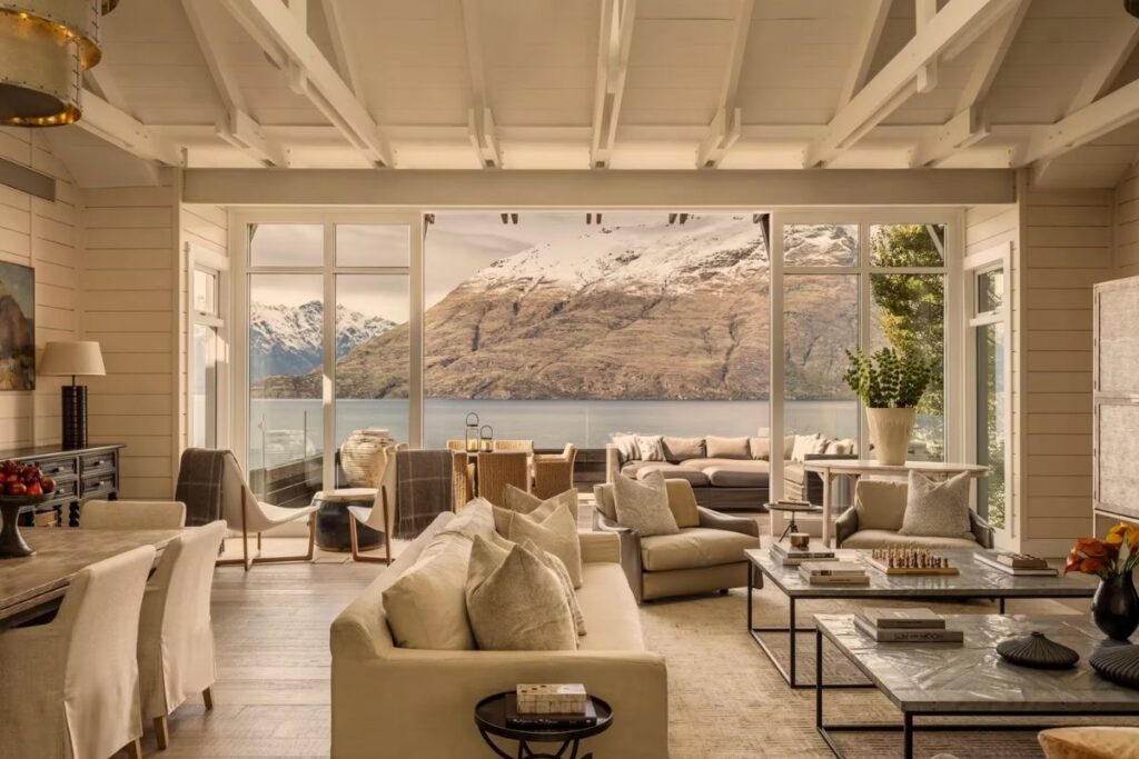 Overlooking Lake Wakatipu near Queenstown, Rosewood Matakauri balances refined lodge design with New Zealand’s adrenaline-driven landscape. Constructed from local schist stone and native timber, the lodge offers uninterrupted views of The Remarkables, Cecil Peak, and Walter Peak. Interiors curated by Virginia Fisher blend contemporary elegance with relaxed alpine textures. The property provides privileged access to heli-hiking, ski fields, and remote fjords, while its culinary program celebrates Central Otago produce and Pinot Noir. Matakauri exemplifies luxury defined by access, scale, and experiential depth rather than excess.